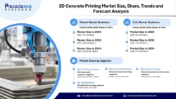 October, 7, 2025, New York--Precedence Researchによると、世界の 3D コンクリート プリンティング市場の収益は、2025 年に 7,101 億 4,000 万米ドルに達し、CAGR 47.35% で 2033 年までに約 1,5,713 億 5,000 万米ドルに達すると予測されている。